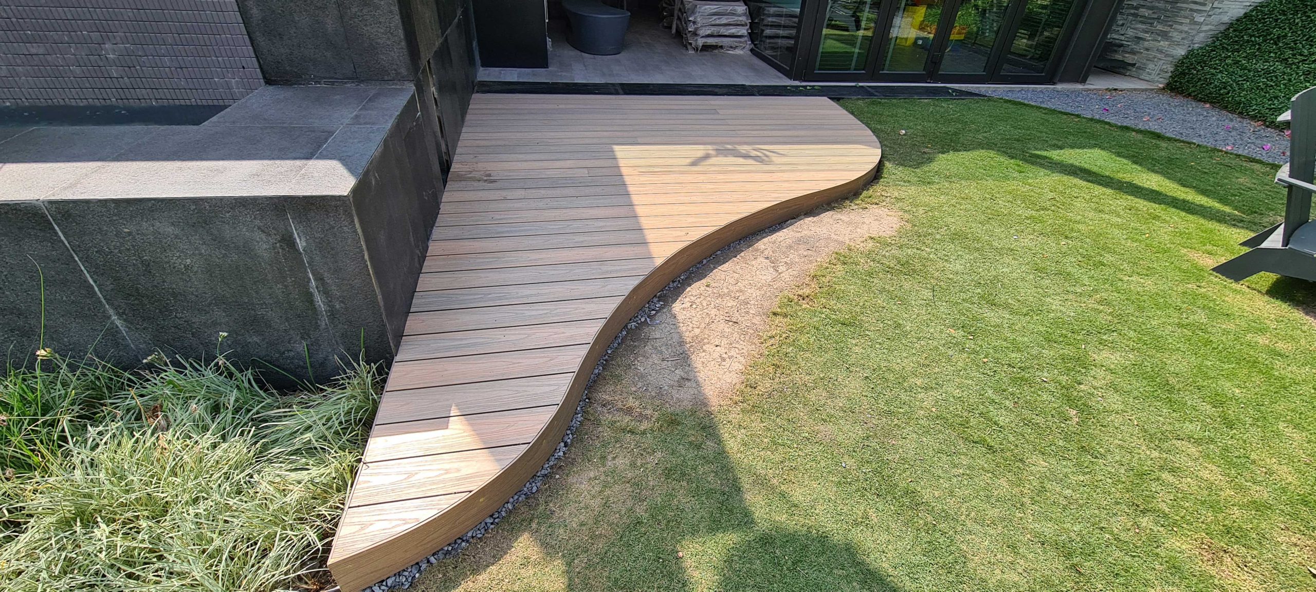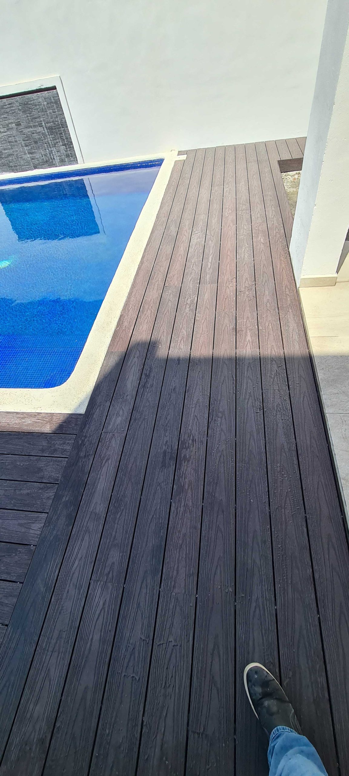 El deck sintético es ideal para espacios exteriores que buscan estética y funcionalidad sin complicaciones. Los usos más comunes incluyen: