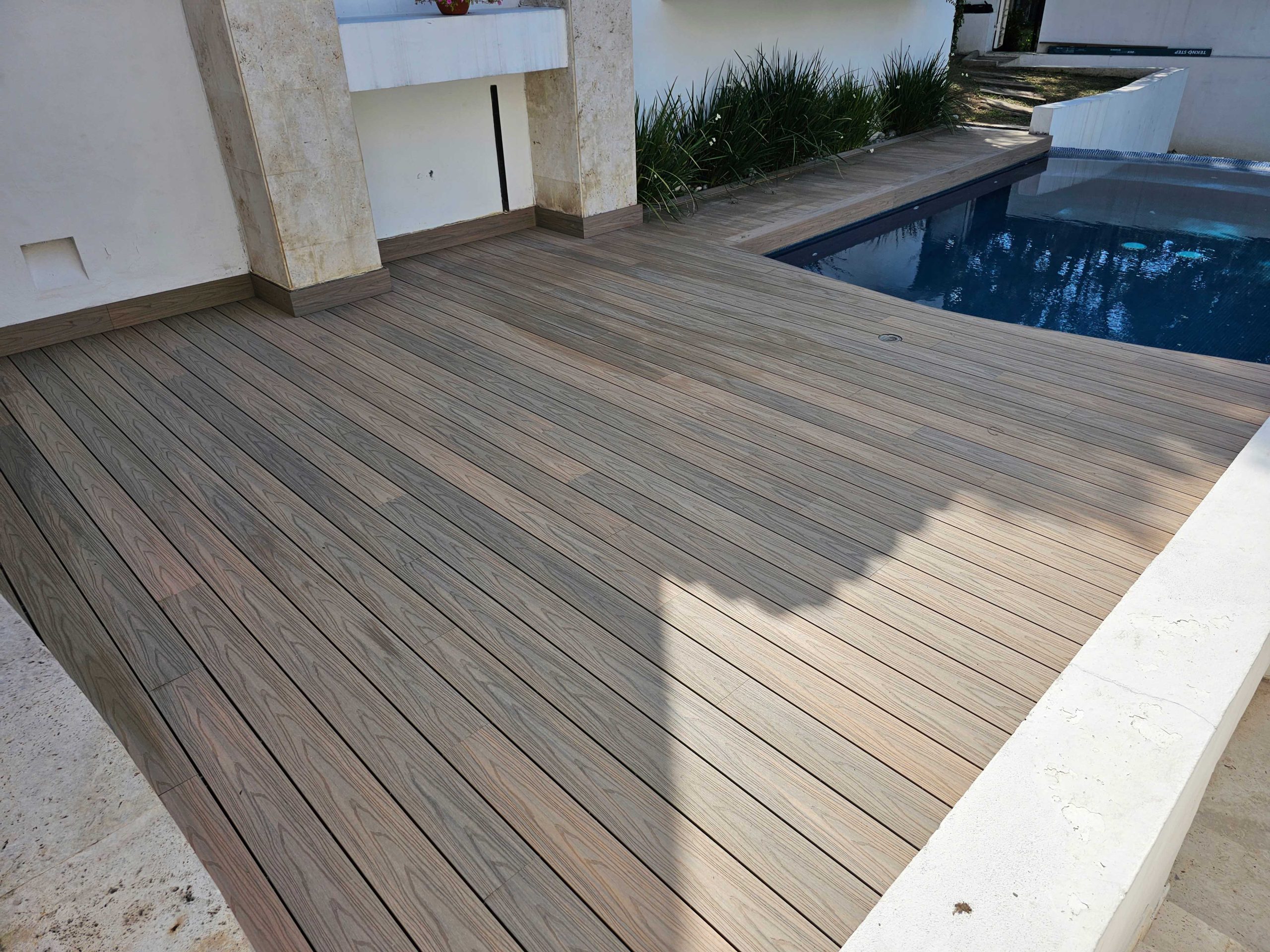 El deck sintético, también conocido como deck WPC (Wood Plastic Composite), es una alternativa moderna y duradera a los decks de madera natural. Está fabricado a partir de una mezcla de fibras de madera reciclada y polímeros plásticos, lo que lo hace resistente a la humedad, al sol, a las plagas y al desgaste del tiempo, sin sacrificar una apariencia estética similar a la madera natural.